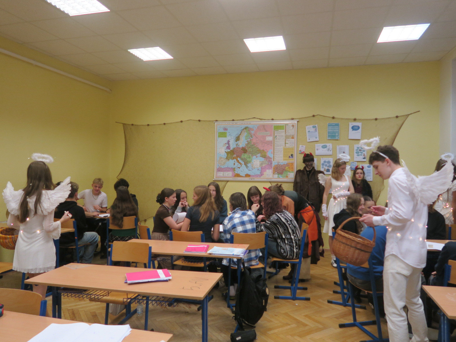 5. prosince jsme jako kvinta odstartovali Mikulášskou misi – s cílem rozsvítit školu vánoční náladou a potěšit každého, koho jsme potkali. Připravovali jsme dekorace, program i maličkosti tak, aby každý úsměv stál za to, a přitom jsme si to užili stejně jako ti, kterým jsme radost rozdávali. Každý detail jsme promýšleli, až to někdy vypadalo, že z toho bude vědecký projekt. Ale stálo to za to – smích, překvapení a radost všude kolem pro nás byly tou největší odměnou.