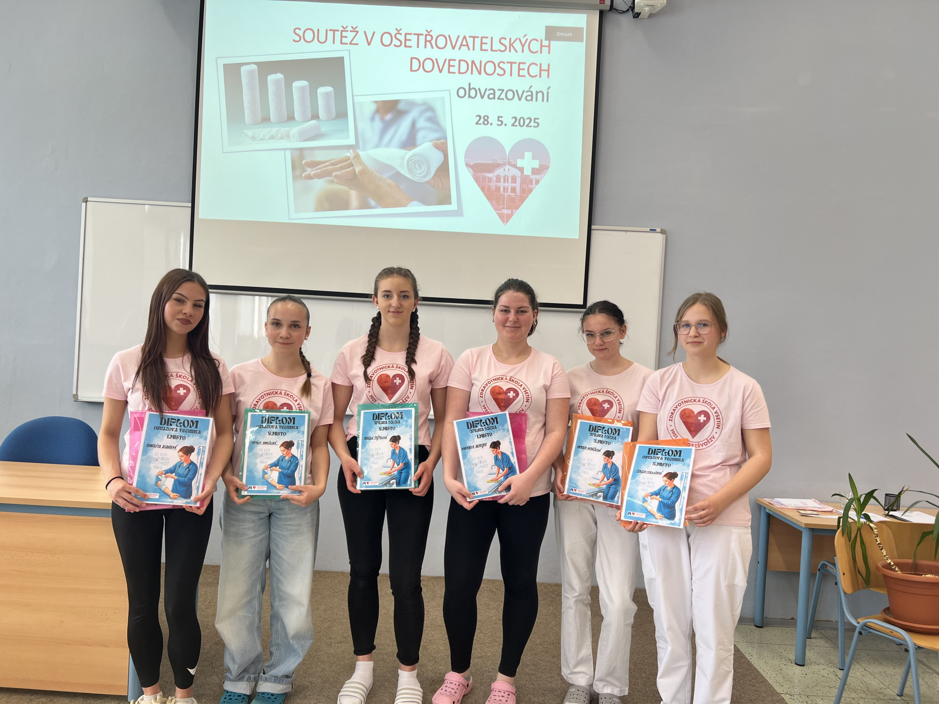 Dne 28. 5. 2025 proběhla na naší škole soutěž v ošetřovatelských dovednostech, které se zúčastnili dobrovolníci z řad studentů tříd 1.ZA, 1.ZB a 1.ZO. Soutěž byla rozdělena do dvou kategorií – úprava lůžka a obvazová technika. Každé z kategorií se zúčastnilo 16 studentů.