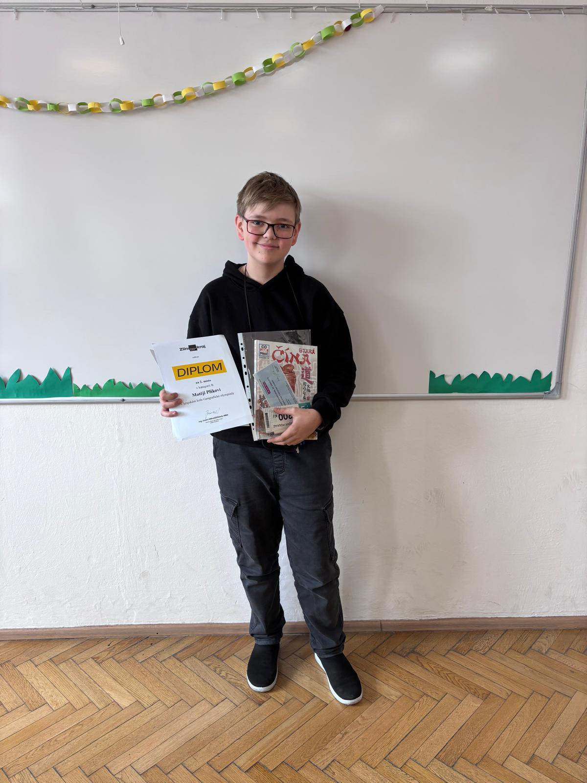 V krajském kole Geografické olympiády naši školu reprezentovali A. Malá (4.AV), V. Martinka (2.C) a M. Plšek (2.AV). Právě Matěj získal ve své kategorii 2.místo.