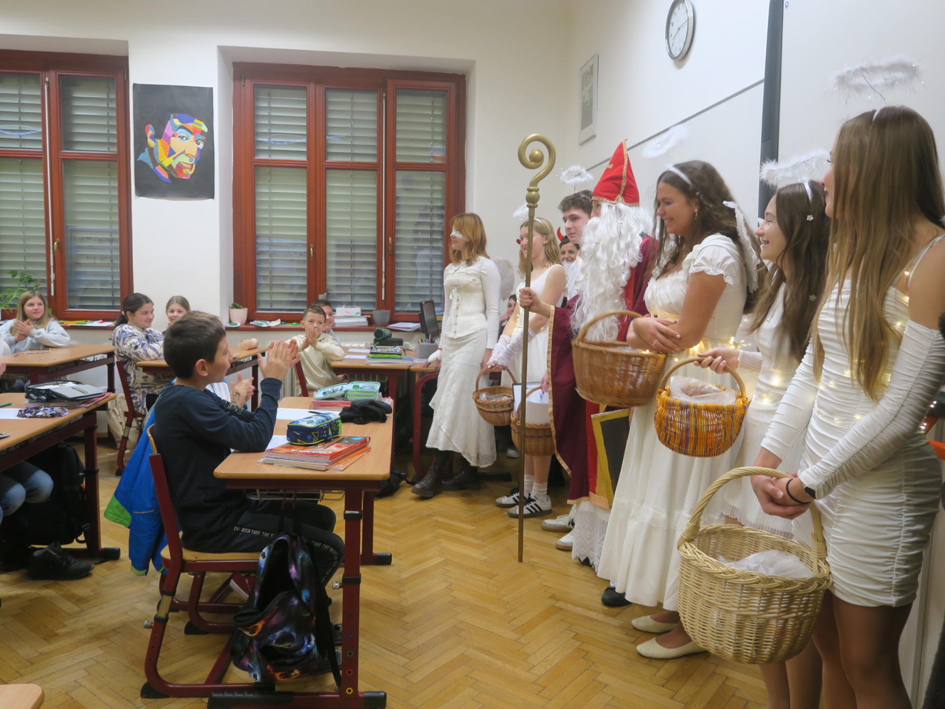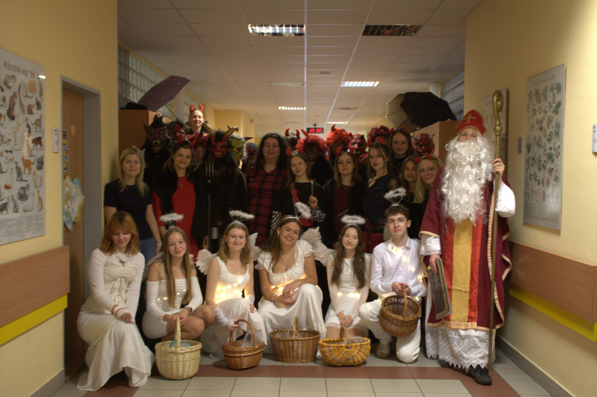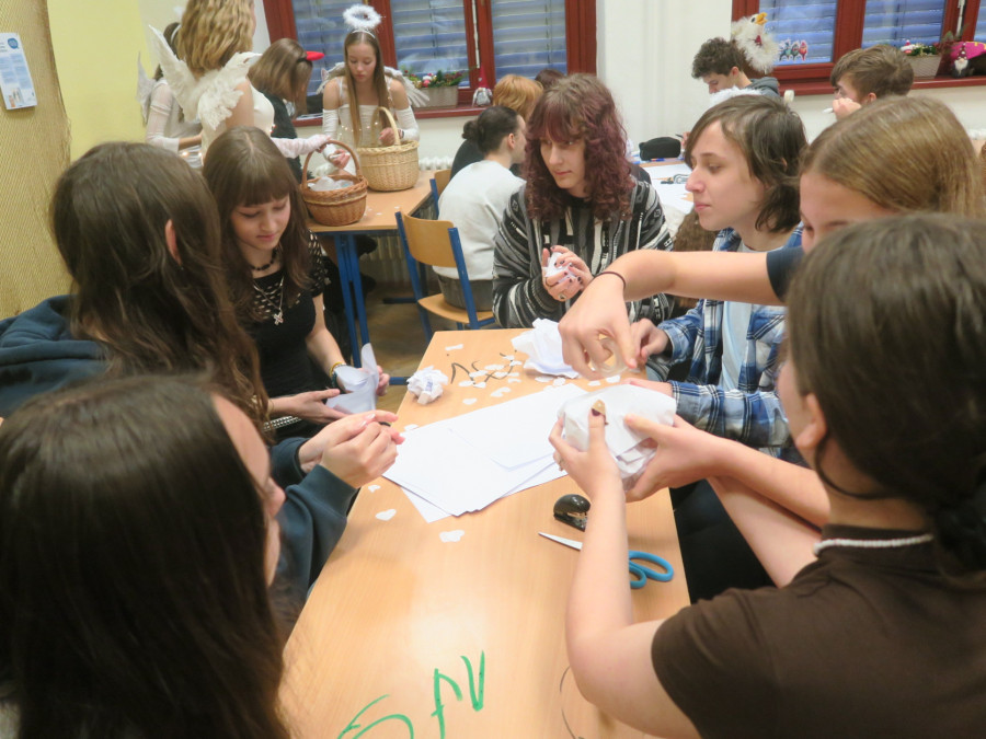 5. prosince jsme jako kvinta odstartovali Mikulášskou misi – s cílem rozsvítit školu vánoční náladou a potěšit každého, koho jsme potkali. Připravovali jsme dekorace, program i maličkosti tak, aby každý úsměv stál za to, a přitom jsme si to užili stejně jako ti, kterým jsme radost rozdávali. Každý detail jsme promýšleli, až to někdy vypadalo, že z toho bude vědecký projekt. Ale stálo to za to – smích, překvapení a radost všude kolem pro nás byly tou největší odměnou.